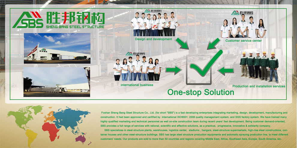 佛山市勝邦鋼結(jié)構(gòu)有限公司(簡稱“勝邦鋼構(gòu)”m.ownyourownvineyard.com)是一家集合營銷、設(shè)計(jì)、研發(fā)、制造、施工為一體,專業(yè)承建鋼結(jié)構(gòu)建筑的發(fā)展型企業(yè)。并通過國際ISO9001:2008質(zhì)量管理體系認(rèn)證和SGS工廠體系認(rèn)證。近年的飛快發(fā)展,培養(yǎng)了一大批高素質(zhì)營銷、技術(shù)人才和現(xiàn)場施工隊(duì)伍,勝邦以客戶需求為導(dǎo)向,為客戶提供合理的、科學(xué)的、有效的解決方案,以務(wù)實(shí)進(jìn)取、不斷創(chuàng)新、團(tuán)結(jié)一致的精神為客戶提供全方位的服務(wù)。