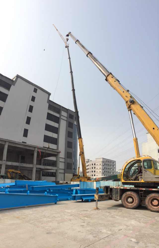 嘉禾羽毛球館位于廣州某高層建筑樓頂,為施工增加吊裝難度。項(xiàng)目面積達(dá)1450平方米。勝邦鋼構(gòu)公司專業(yè)生產(chǎn)加工鋼結(jié)構(gòu)廠房,倉庫,多層辦公室、宿舍、冷庫等鋼結(jié)構(gòu)建筑。勝邦鋼構(gòu)擁有專業(yè)的鋼結(jié)構(gòu)加工設(shè)備及完善的設(shè)計生產(chǎn)加工流程,滿足各種鋼結(jié)構(gòu)建筑的加工要求。以下為部分建筑安裝展示圖片: