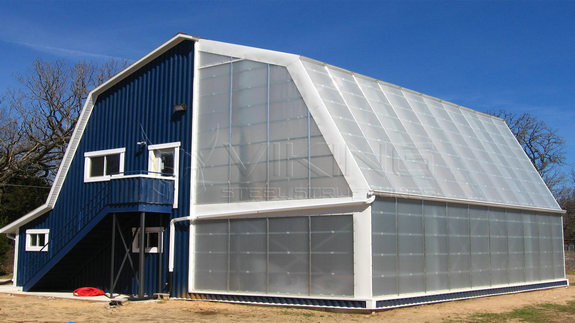 In terms of safety and service life, steel structure warehouse is higher than the traditional steel-concrete structure warehouse, steel structure warehouse all materials cross section area is small, easy to install and transport, has a large space, large span, wind and earthquake, rain and leakage, ventilation and moisture and other excellent performance. And the steel structure warehouse is suitable for a variety of industries, production and processing industry, logistics storage, aquaculture, greenhouse planting, etc., but also widely used in restaurants, stadiums, airports, large markets, leisure and vacation places.